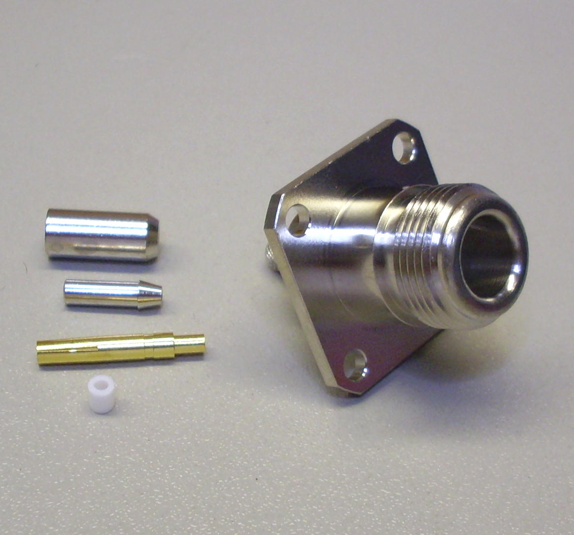 N-Flansch-Buchse, Teflon 3mm, zum Crimpen Hersteller: ROSENBERGER Die Buchse ist sauber verarbeitet und von guter Qualität. Der Innenleiter ist vergoldet, was für einen guten Kontakt bürgt. Die Buchse ist z. B. geeignet für das Koaxialkabel: RG316 / RG188 / RG174 etc. | |||||||||||||||||||||||||||||||||||||||||||||||||||||||||||||||||||||||||||||||