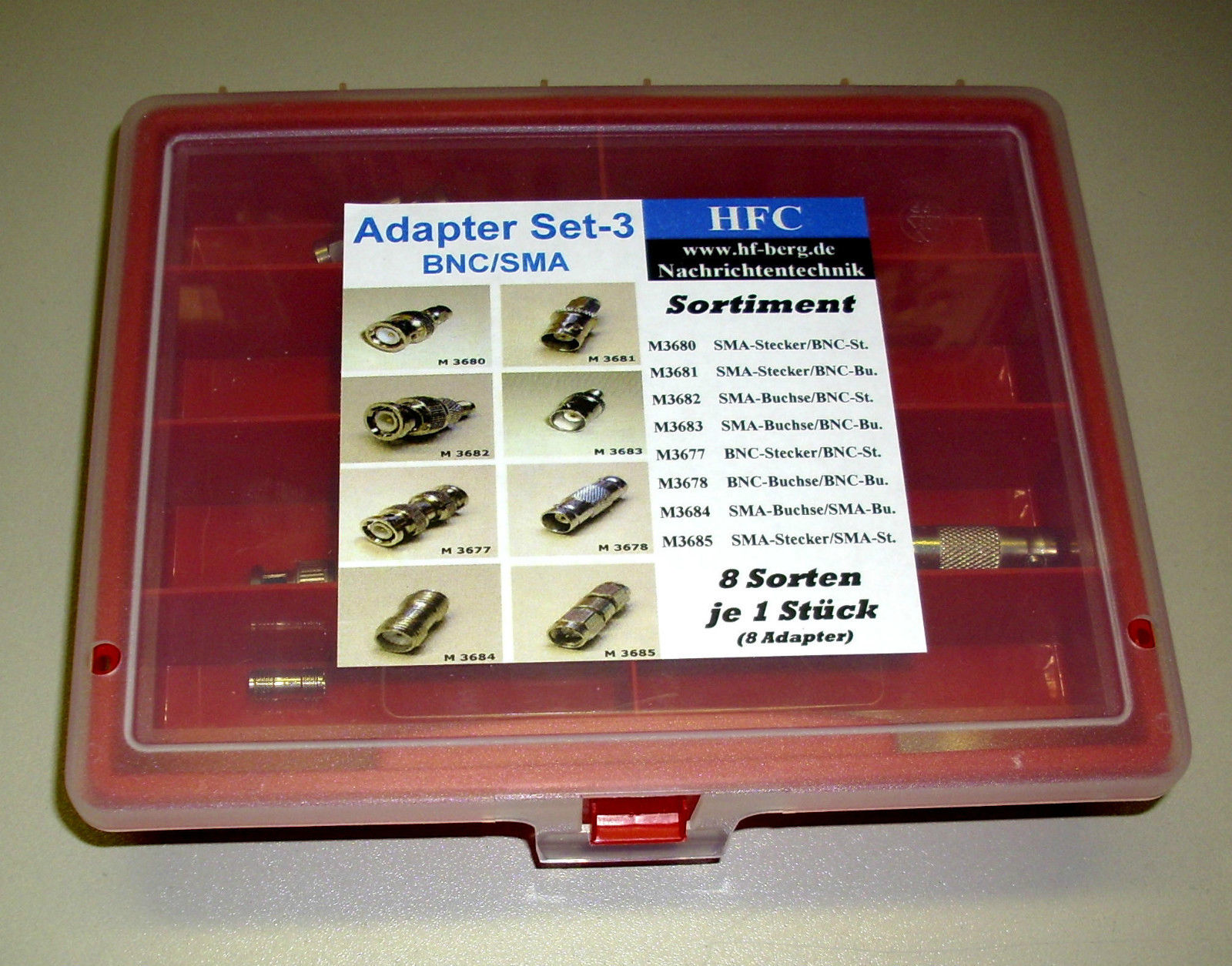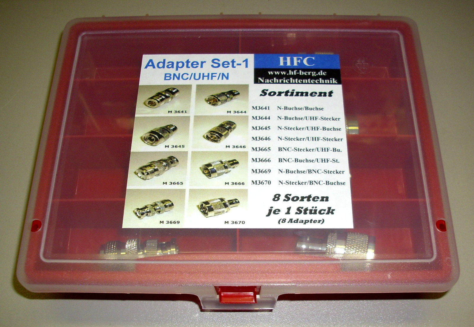 1 Stück N-Buchse / N-Buchse (M3641) 1 Stück N-Buchse / UHF-Stecker (M3644) 1 Stück N-Stecker / UHF-Buchse (M3645) 1 Stück N-Stecker / UHF-Stecker (M3646) 1 Stück BNC-Stecker / UHF-Buchse (M3665) 1 Stück BNC-Buchse / UHF-Stecker (M3666) 1 Stück N-Buchse / BNC-Stecker (M3669) 1 Stück N-Stecker/ BNC-Buchse (M3670) | ||||||||||||||||||||||||||||||||||||||||||||||||||||||||||||||||||||||||||||||||||||||||||||||||||||||