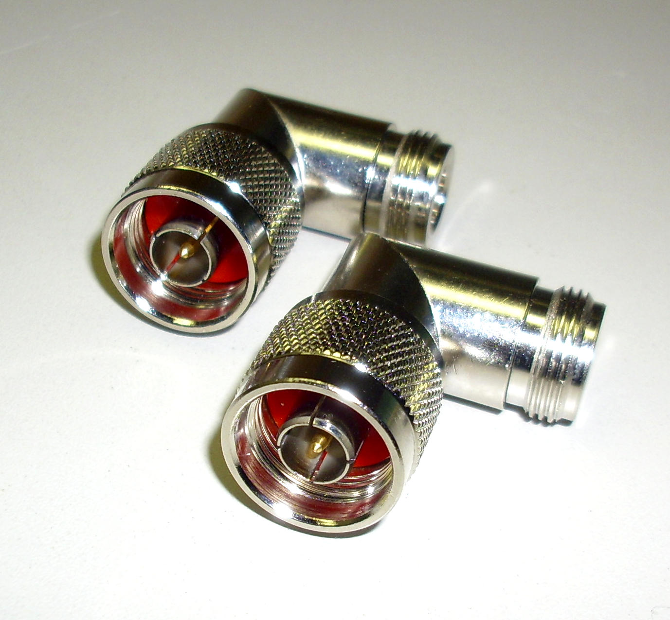 2 Stück N-Winkelstücke Stecker / Buchse Die Adapter sind sauber verarbeitet und von guter Qualität. Buchse und Stecker sind innen vergoldet, was für einen guten Kontakt bürgt. | ||||||||||||||||||||||||||||||||||||||||||||||||||||||||||||||||||||||||||||||||||||||||||||||||||